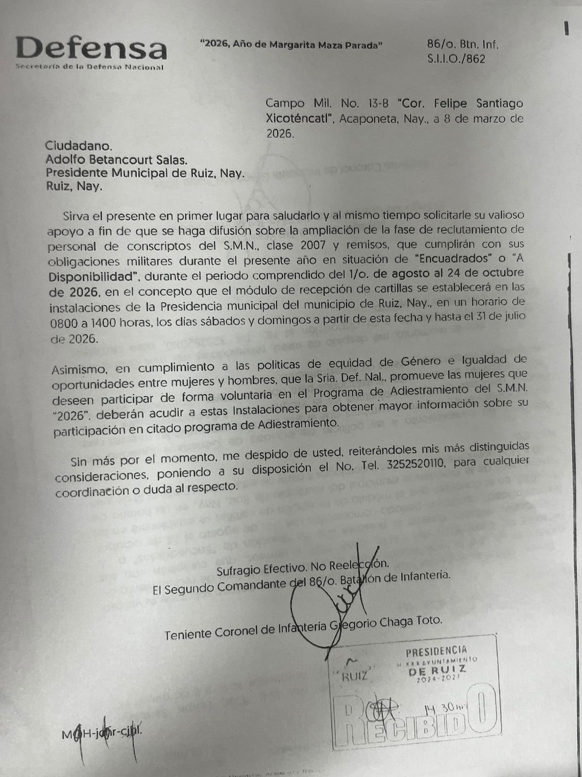 H.XXX AYUNTAMIENTO CONSTITUCIONAL DE RUIZ
